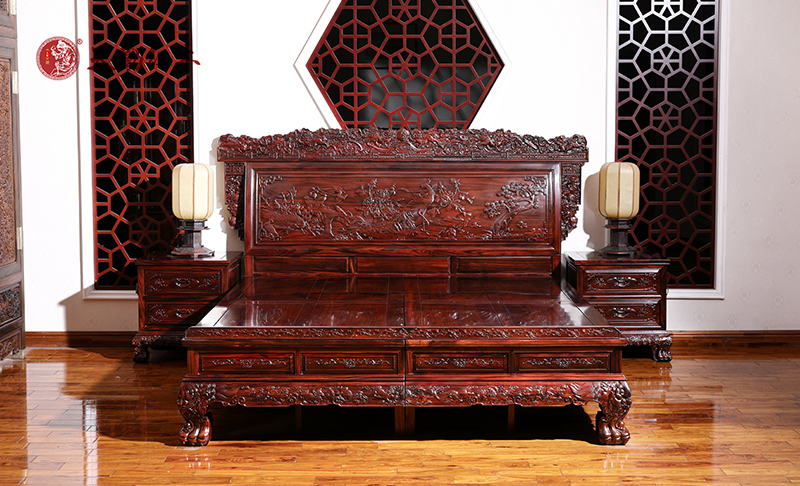 天勤紅木 紅木家具印尼黑酸枝(學名:闊葉黃檀)事事如意大床臥室系列圖片及家具信息