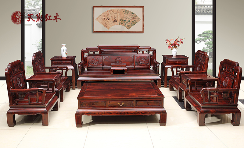 產(chǎn)品名稱:天勤紅木 紅木家具印尼黑酸枝(學(xué)名:闊葉黃檀)國(guó)色天香沙發(fā)客廳系列13件套
