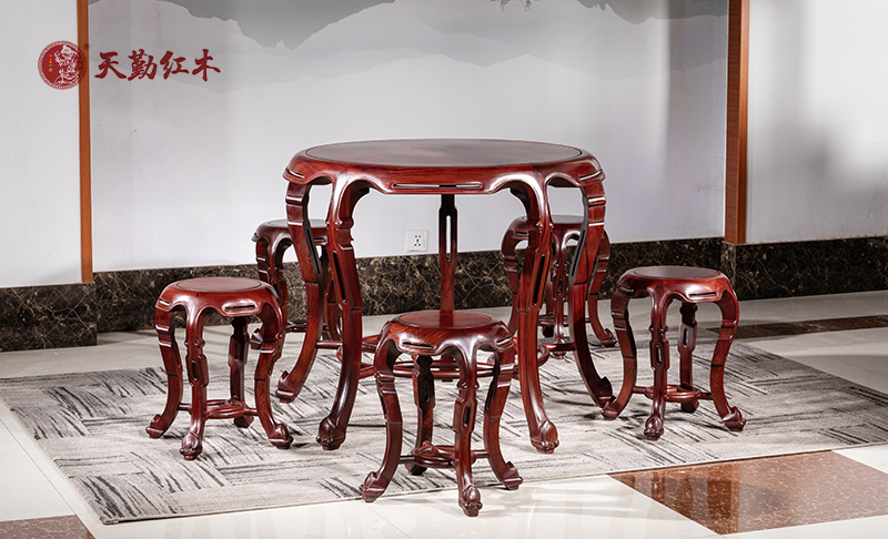 產(chǎn)品名稱:天勤紅木 紅木家具紅酸枝(學名:巴里黃檀)梅花桌紅酸枝