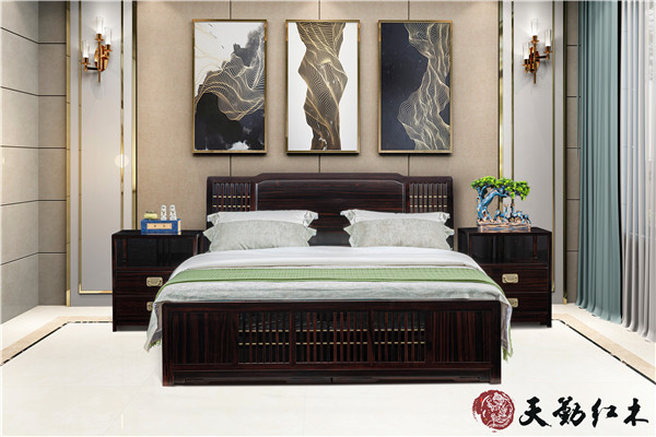天勤紅木 材質:條紋烏木 1.8m韻江南大床圖片及家具信息