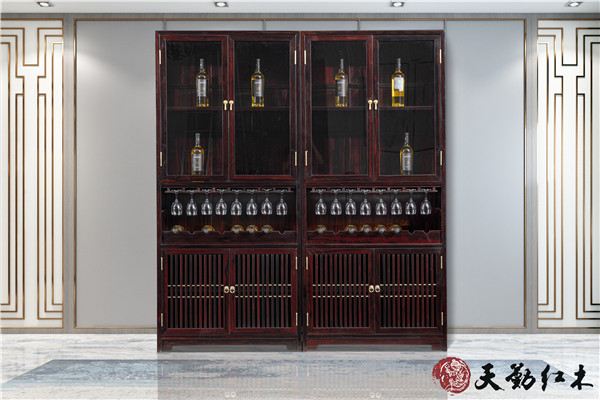 天勤紅木 材質(zhì):條紋烏木 韻江南酒柜圖片及家具信息